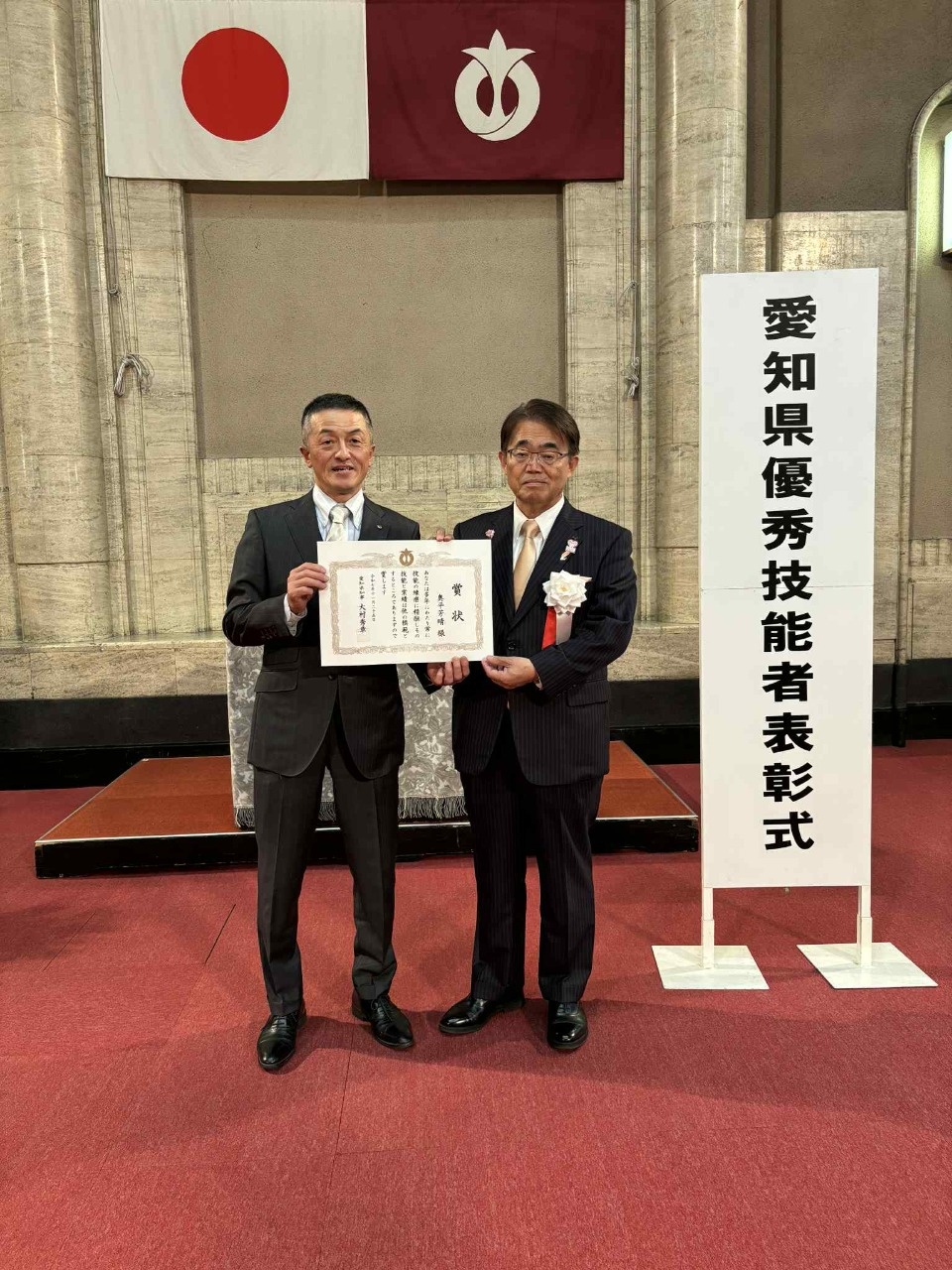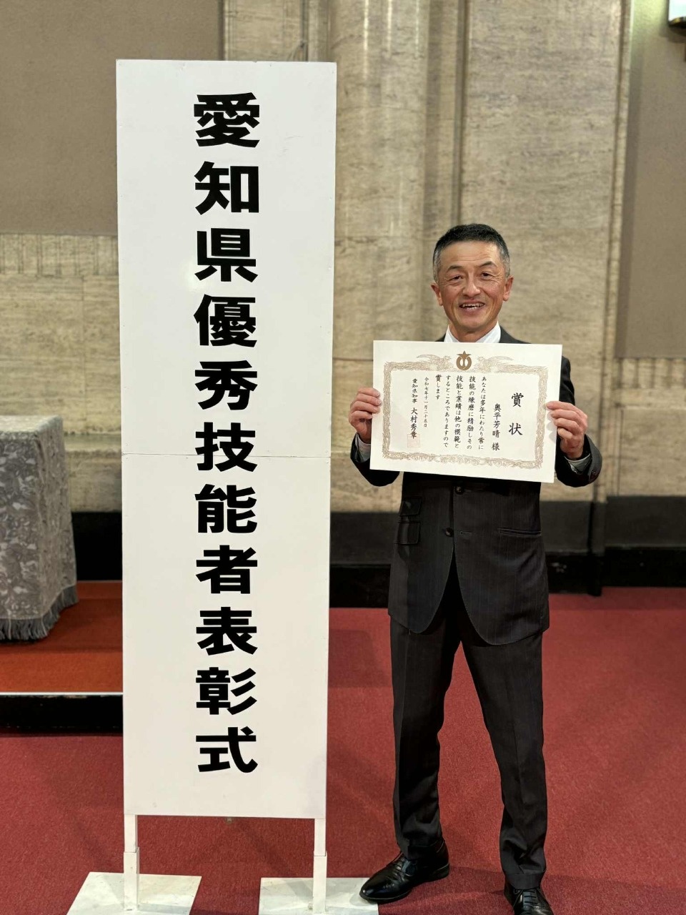 奥平芳晴が令和7年度(2025年度)愛知県優秀技能者表彰(あいちの名工)を受けました。